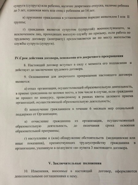 типовая форма договора о целевом обучении установленная Правительством Российской Федерации включает в себя следующий пункт