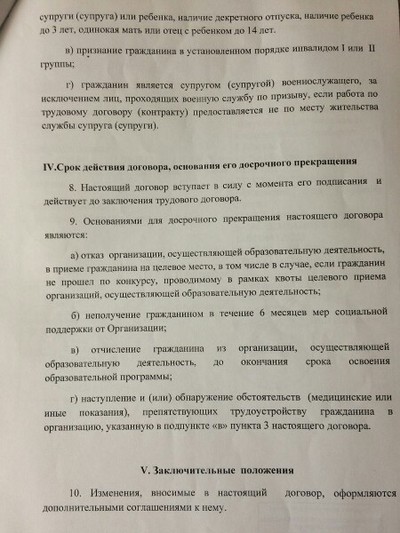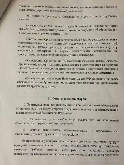 Все пункты выполнены из предмета договора. Универ закончен, трудовой договор заключен.