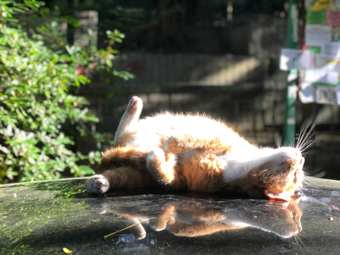 Шла утром на работу. Как всегда на машине кайфовал сосед, Марсик. Мимоходом сфотографировала, а потом уже увидела, как он здорово отразился в глянце автомобильной крыши.