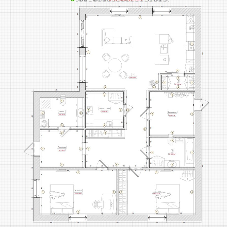 на мебель сильно не смотрите, расставил ее из того что было в планировщике.