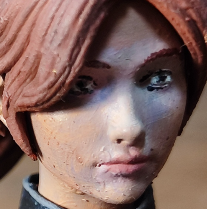 Подобная ситуация, что произошла с лицом могла быть из-за плохо наложенного грунта. Сам с таким сталкивался поначалу. В остальном неплохой покрас, правда немного больше аккуратности также не помешало.