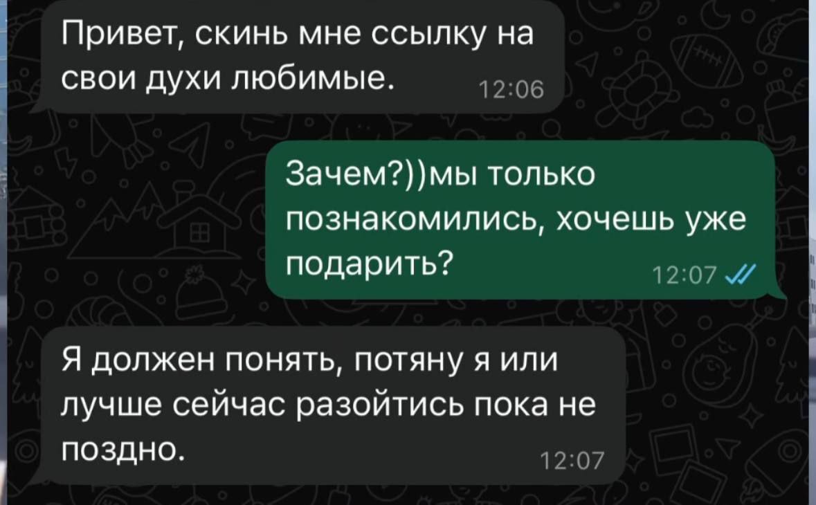 987 KOPOBOPOTEHb Противозачаточные шутки Оценщик 3 дня назад Из сети Юмор Мужчины и женщины Отношения Переписка Скриншот Духи 76 71 8 2 1 Ещё 0