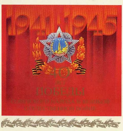 Цвет победы это КРАСНЫЙ цвет. Никаких георгиевский ленточек не было ни в 45 ни в 65, ни в 85, ни в 95. Орден чуть выше не с георгиевский лентой, а с гвардейской.