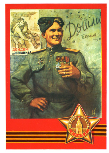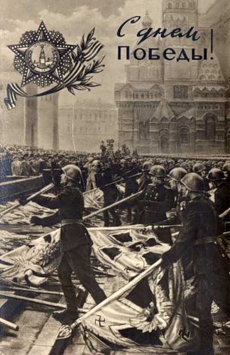 "более того на всех приведенных Вами Советских открытках изображена Гвардейская лента , а не Георгиевская а они разные ,даже тут идёт искажение прошлого , слишком много "случайностей" не находите ?"