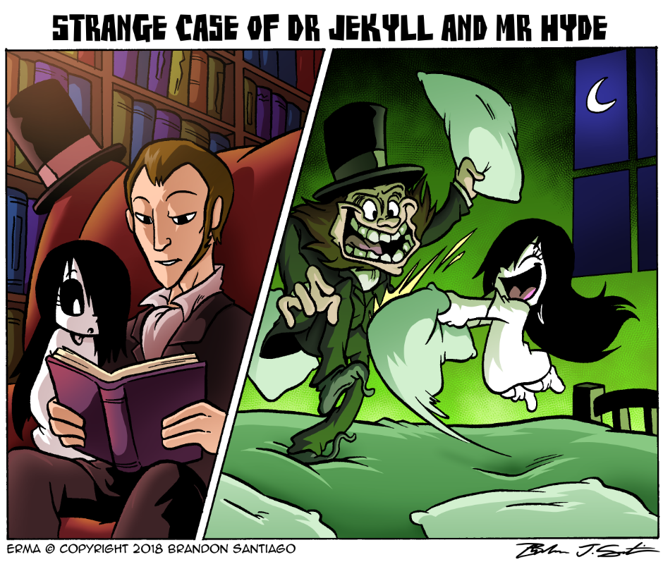 Странная история доктора Джекила и мистера Хайда - готический роман шотландского писателя Роберта Стивенсона, который появился 5 января 1886 года в Лондоне., рассказывающий про раздвоение личности.