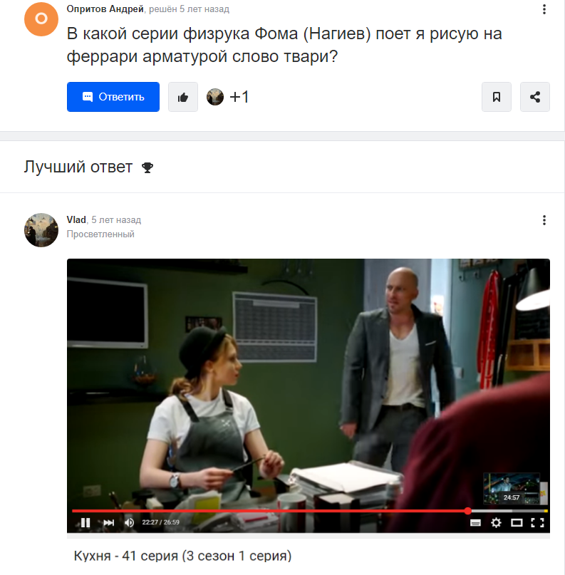 Как всегда на автомате щелкнув на эту клоаку дезинформации впервые в жизни увидел правильный ответ, да не просто ответ, а еще и с тайм - кодом!