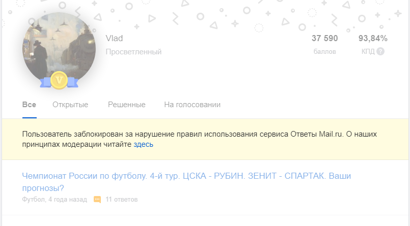 К слову пользователя забанили. Зачем вам эта информация? хуй знает. А мне зачем? Тоже хуй знает, но чет как-то жалко чувака