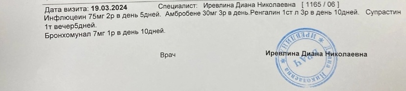 Март 2024 года, моей дочери 2 месяца. У ребёнка сильно текут слюни и кашель появился. Вызвала врача на дом - орви. Спустя 2-3 дня снова вызываю, кашель очень сильный, пару секунд после приступа не дышит. ОРВИ, дышите пульмикортом и беродуалом.