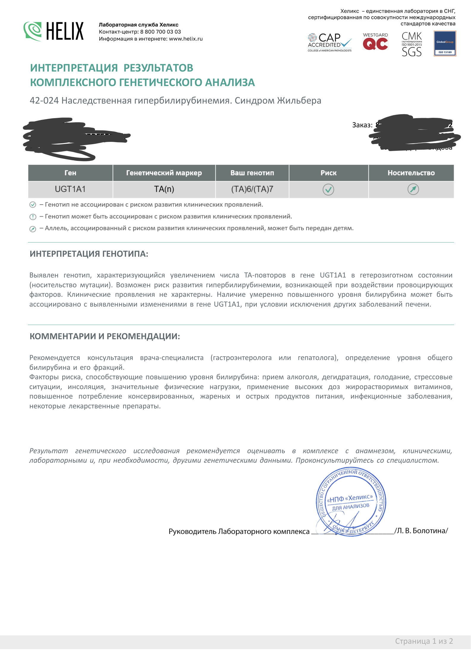 Есть ещё такой интересный Синдром Жильбера,(который как оказалось есть у 3-10% населения) он как раз и даёт положительный ПЦР на гепатит С, но с разбросом 50%, и как раз билирубин при нем часто бывает повышен. А я делал тесты на гепатит С и в разных лабораториях по разному, у кого положительный результат, у кого отрицательный, бывало даже так что в одной и той же лаборатории результат анализа менялся через месяц-два. А потом попал к хорошему инфекционисту, она то и направила на этот анализ. Правда по ОМС его не делают, а любые генетические исследования не дешёвые.