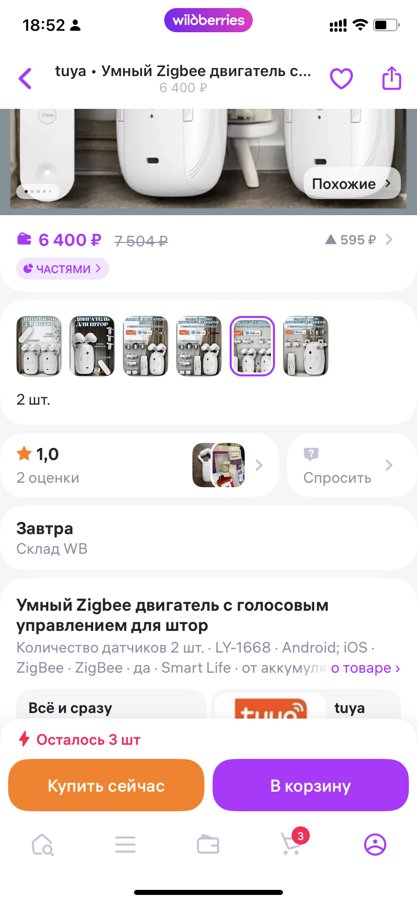 Заказал двигатель для штор на ZigBee т.к уже имеется подобный на блютус, решил заменить. В описании + фото, должно прийти 2 штуки (скрин внизу), доставка со склада продавца. В итоге прислали 1 мотор, он был упакован в заводскую плёнку.
