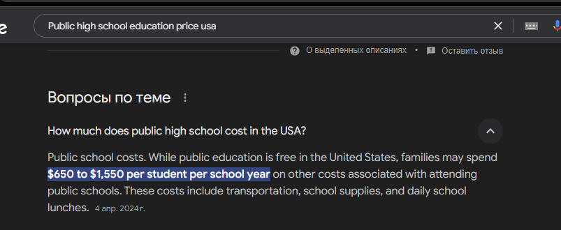 И так даже для себя я открыл некоторые вещи, о которых раньше не думал. Задание заключалось в сравнении уровня жизни в двух странах (естественно, я взял Россию и США) со средней заработной платой. 4 человека - родители и двое детей. Брал минимальный пакет продуктов, среднюю стоимость мед страховки, топлива, коммунальных услуг, сотовой связи, домашнего интернета, обучение двоих детей в школе, НОЛОГИ, и так далее. Исследование поверхностное, на уровне 8-9 класса, ибо больше и не требовалось. Прошёлся по верхушкам минут за 20-30, сделал коротенькую таблицу в экселе и отправил пацану на спасение 4-ки)