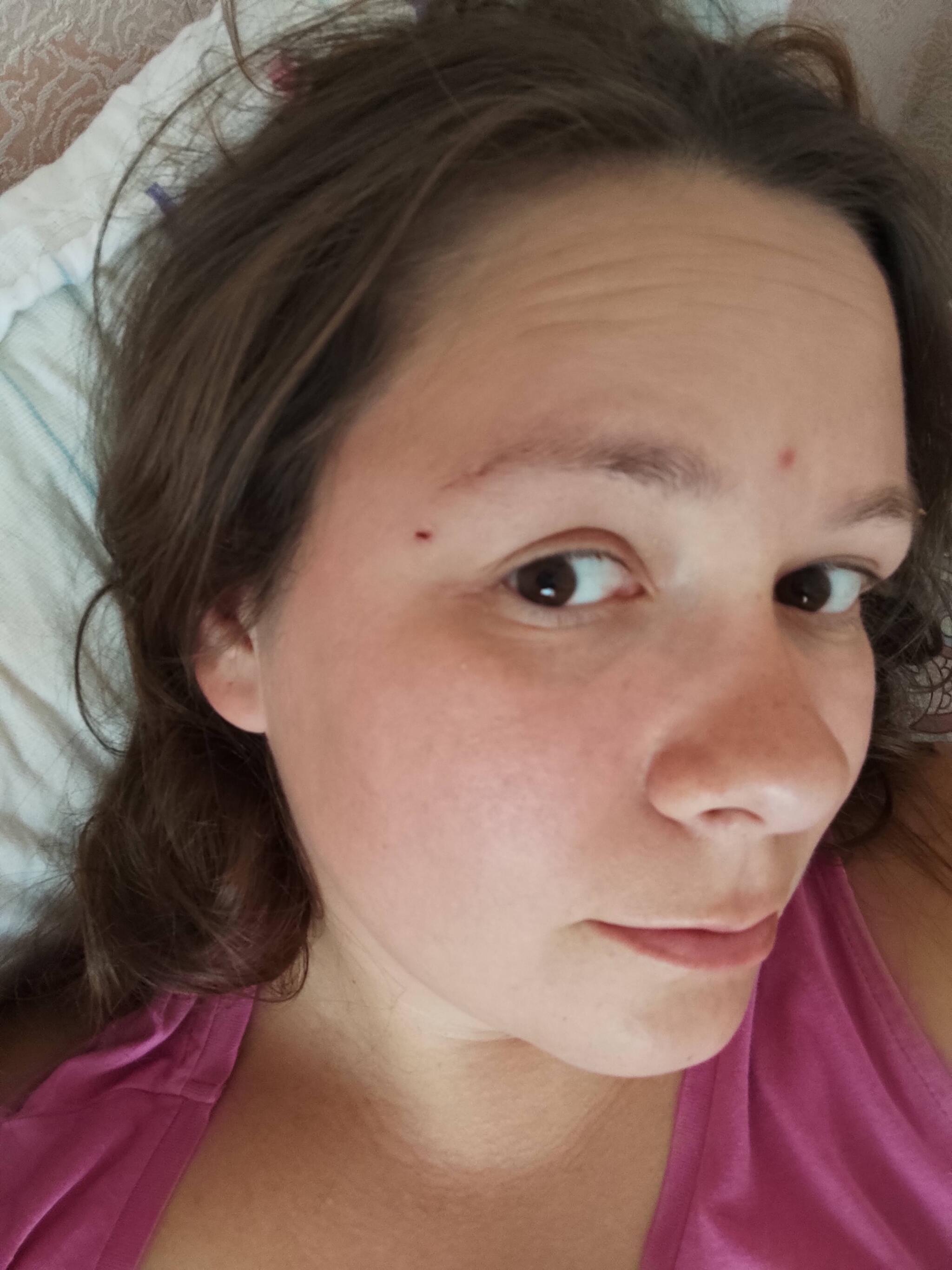 Через неделю у племянницы ДР, в 4 утра кто то из гостей вспоминает что где то есть велик и "смотри что могу!". А я ж лет 20 назад и на школьнике и на каме гоняла на даче, чё мне кружок сделать по двору частного дома, подумаешь что уже 4 утра а во мне литра 4 пива и на двух колесах я сидела последний раз трезвая и килограмм 50 назад. Села, один оборот колес не прокрутила, уехала в баню под воздействием силы притяжения головой, рассекла бровь, кровь останавливали почти час. Фото через часа 4