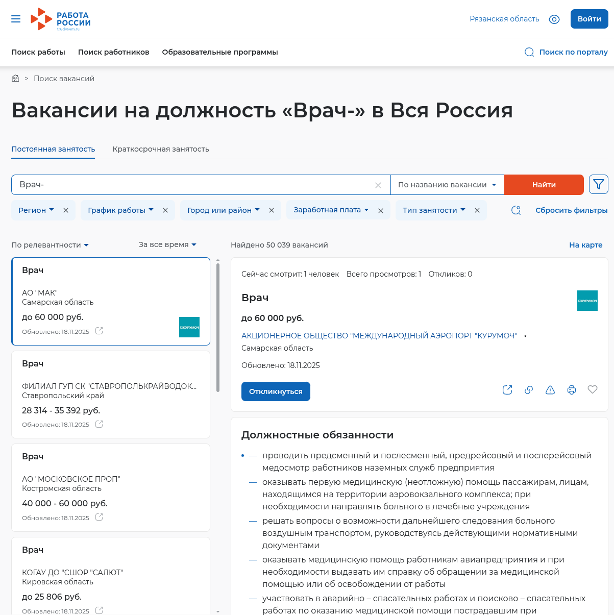 Ввиду А и Б в России не хватает десятков тысяч врачей, преимущественно в разных ебенях.