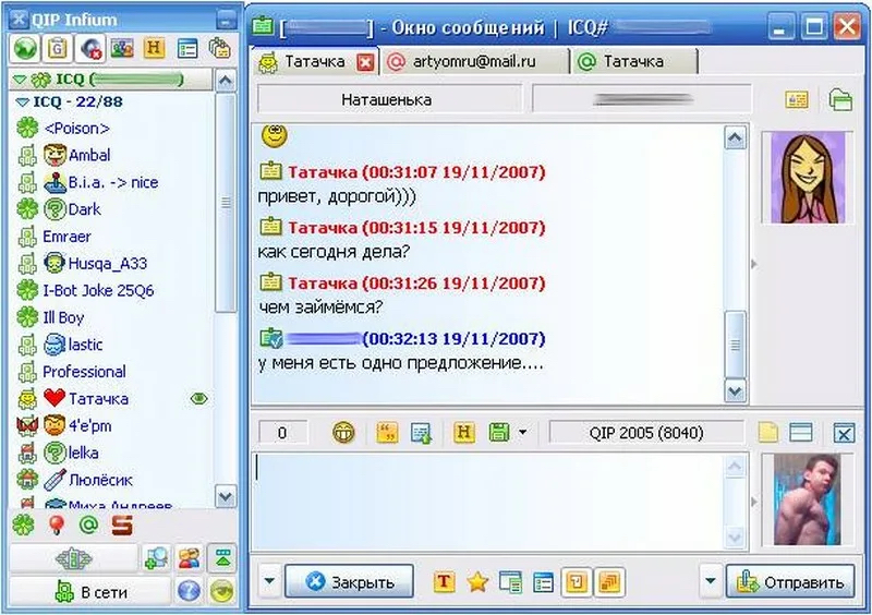 Мы с женой познакомились в ICQ. По началу общались пару раз , может чуть больше) Раньше это было прикольно переписываться сразу с несколькими собеседниками , эх были времена - смайлики , QIP )