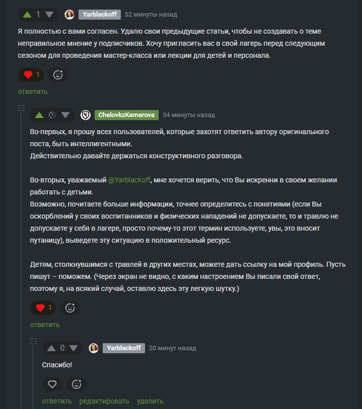 4 Yarblackoff Ответ ChelovkzKemerova в «Как защитники детей превращаются в линчующую толпу»2 2 дня назад [моё] Без рейтинга Травля Травля в школе Волонтерство Подростки Преподаватель Законодательство Воспитание детей Воспитание Хулиганы Родители Конструктивная критика Ответ на пост 2 Ещё 0