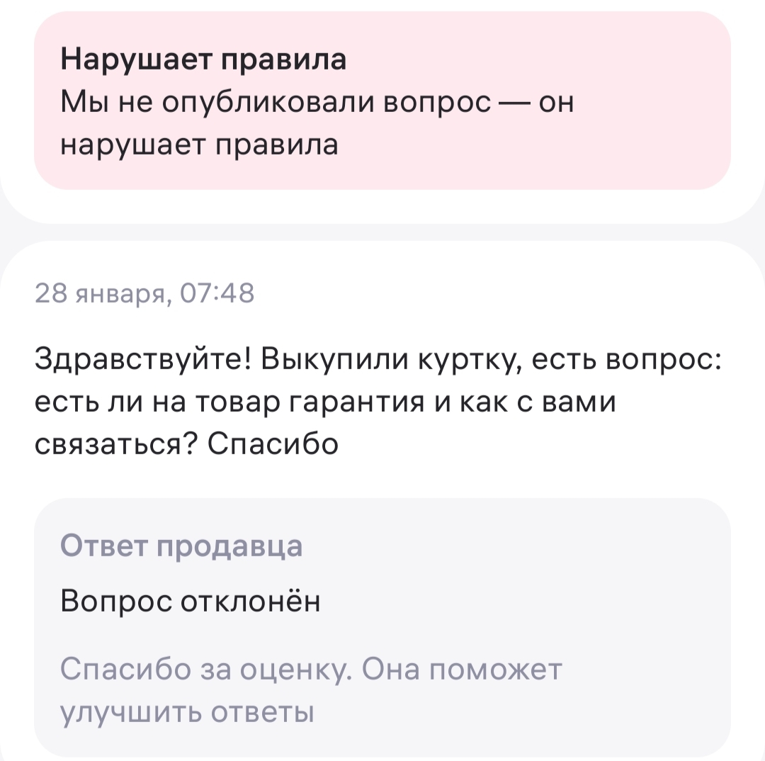 @Yandex.Market, можете объяснить какие именно правила нарушают мои вопросы?