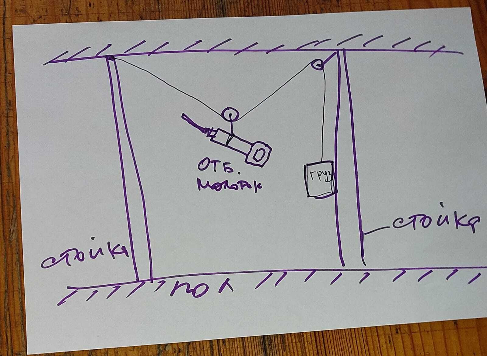 Там было два блока и два груза по сторонам, чтобы можно было болгарку перемещать вперед назад.