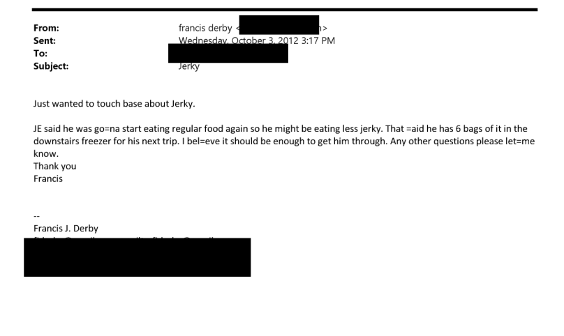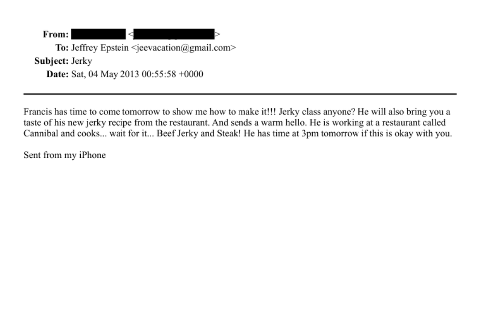 Вот только там говорится о вяленой говядине, которую ПРИВЕДУТ Эпштейну домой, о вяленой говядине, которую нужно отправить на анализы, делятся рецептами вяленой говядины от шеф-повара ресторана под названием «Каннибал» и угорают с того, как это иронично, что шеф-повар готовит в своем ресторане вяленую говядину (типа без кавычек), вяленая говядина у них хранится замороженная и в пакетах, рецепты которыми они делятся не имеют смысла для вялиного и высушенного мяса, получится пересоленная херня, зато они очень похожи на рецепты из сырого мяса и т. д.