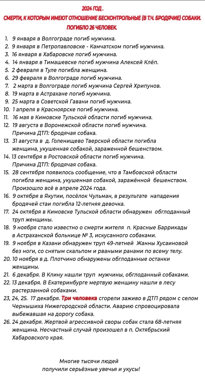 Ниже - список людей погибших от собак в 2024