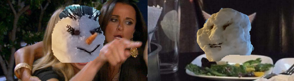 Взглянув на фото этих двух замечательных снеговиков, а точнее на одного и того же снеговика, но "с мэйкапом" и без, я тут же вспомнил про мой любимый мем уходящего года.