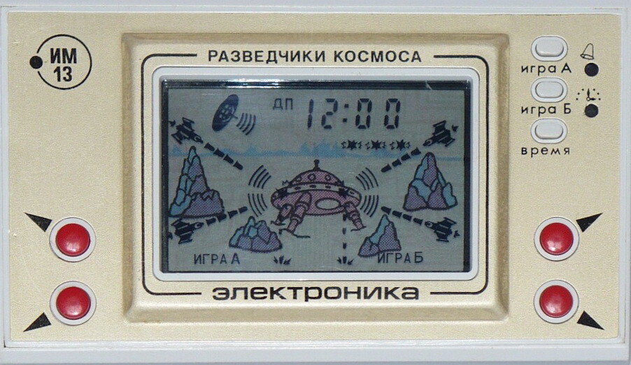 А у меня какие-то летающие тарелки сбивать нужно было, и там инопланетянин с хитрой мордой сидел. Мне казалось что у меня самая скучная игра, все мечтала, что бы мне купили с волком.