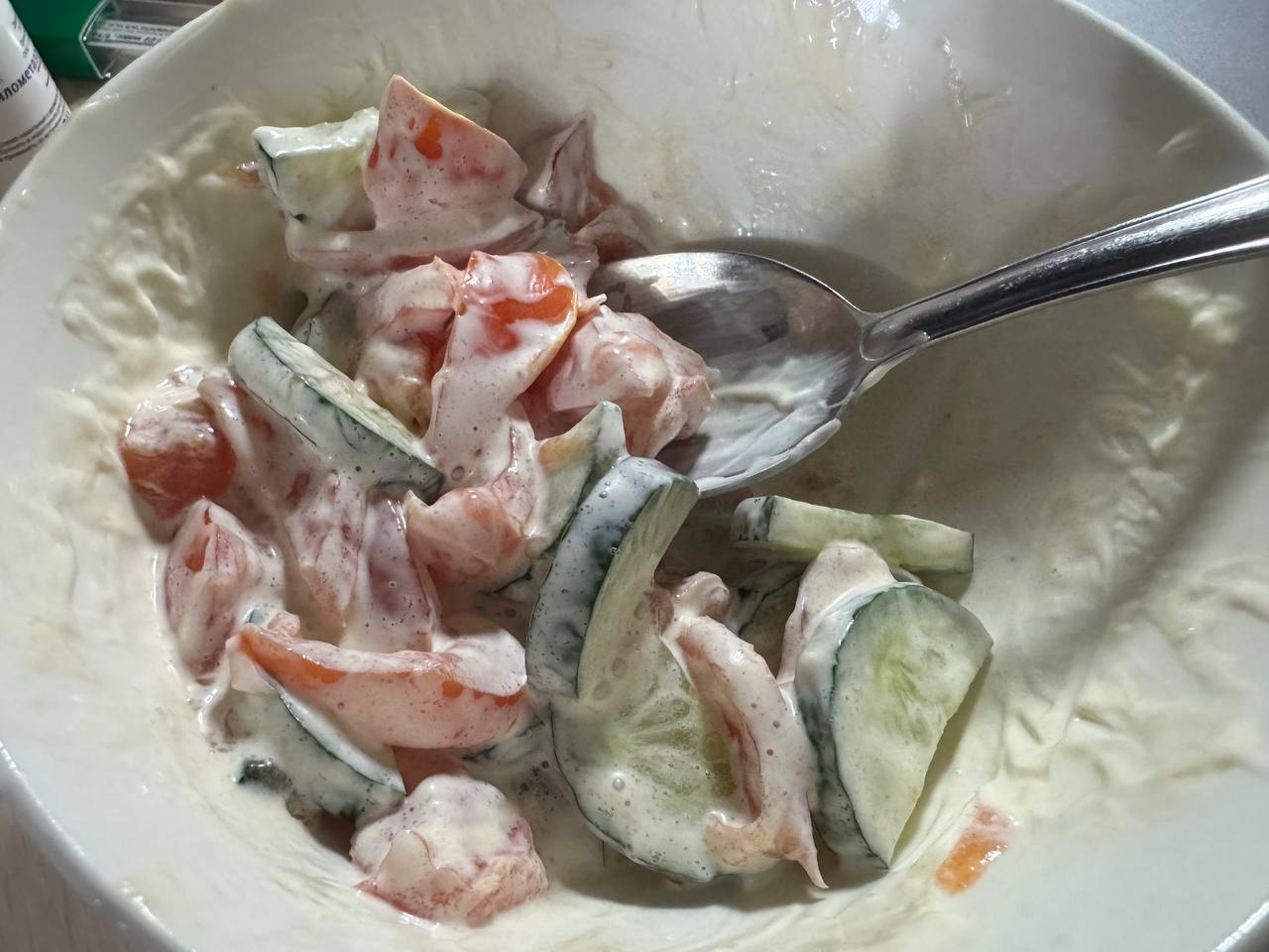 Пища богов: помидоры с огурцом и саратовским провансалем)
