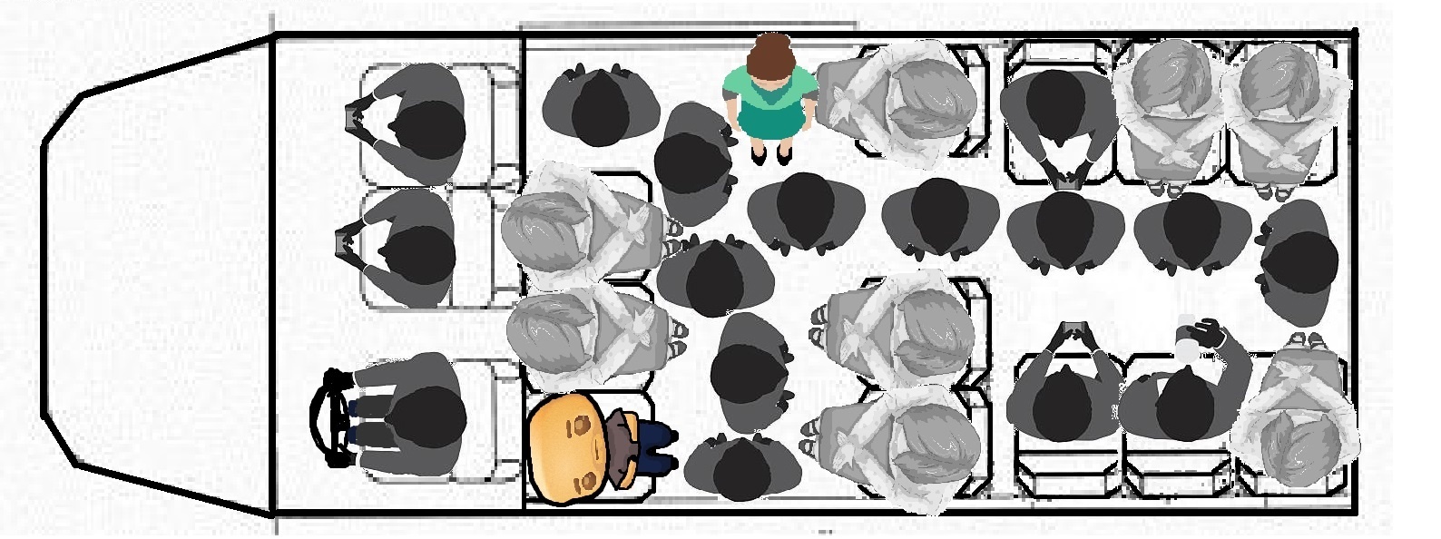 Через пару остановок народу скопилось столько, что стоящие пассажиры держались скорее благодаря друг другу, настолько всё плотно было.