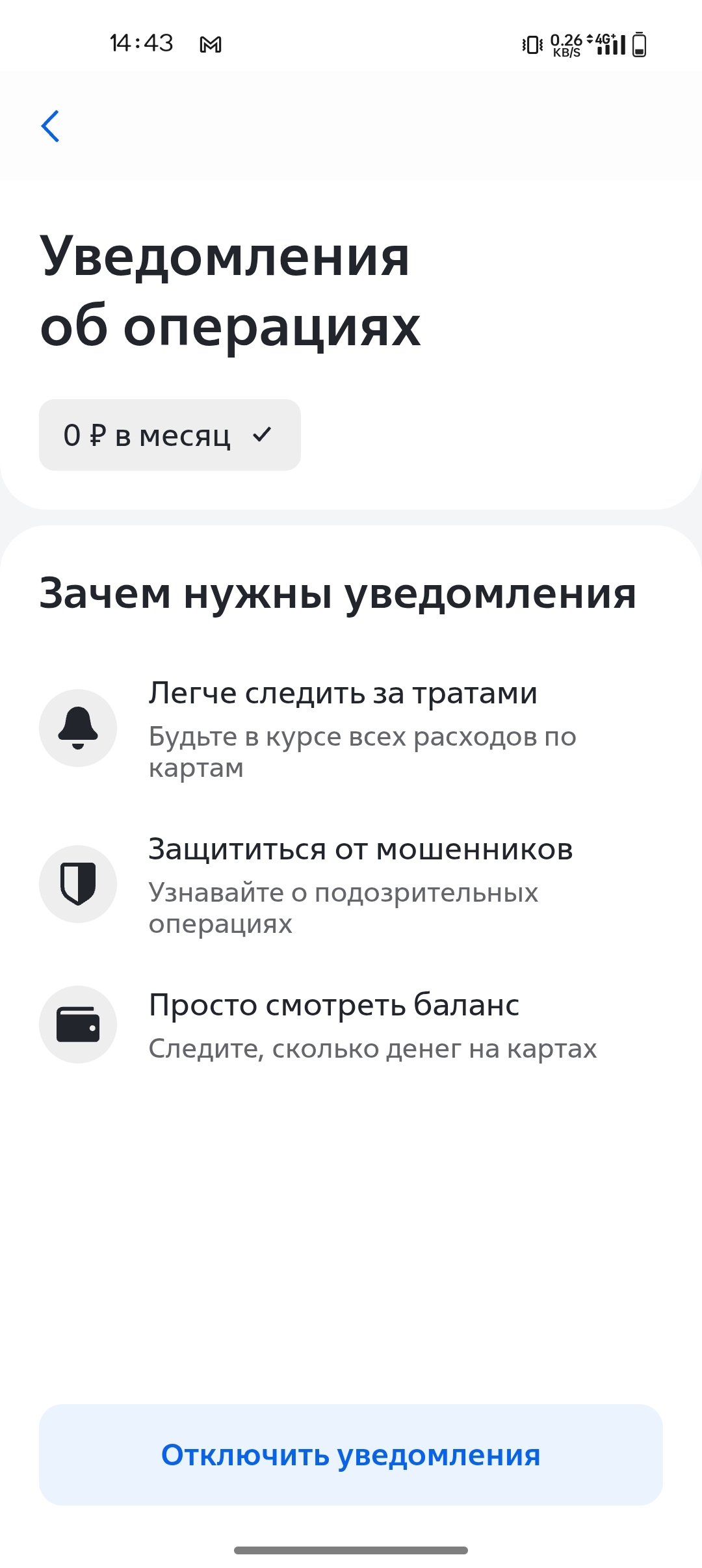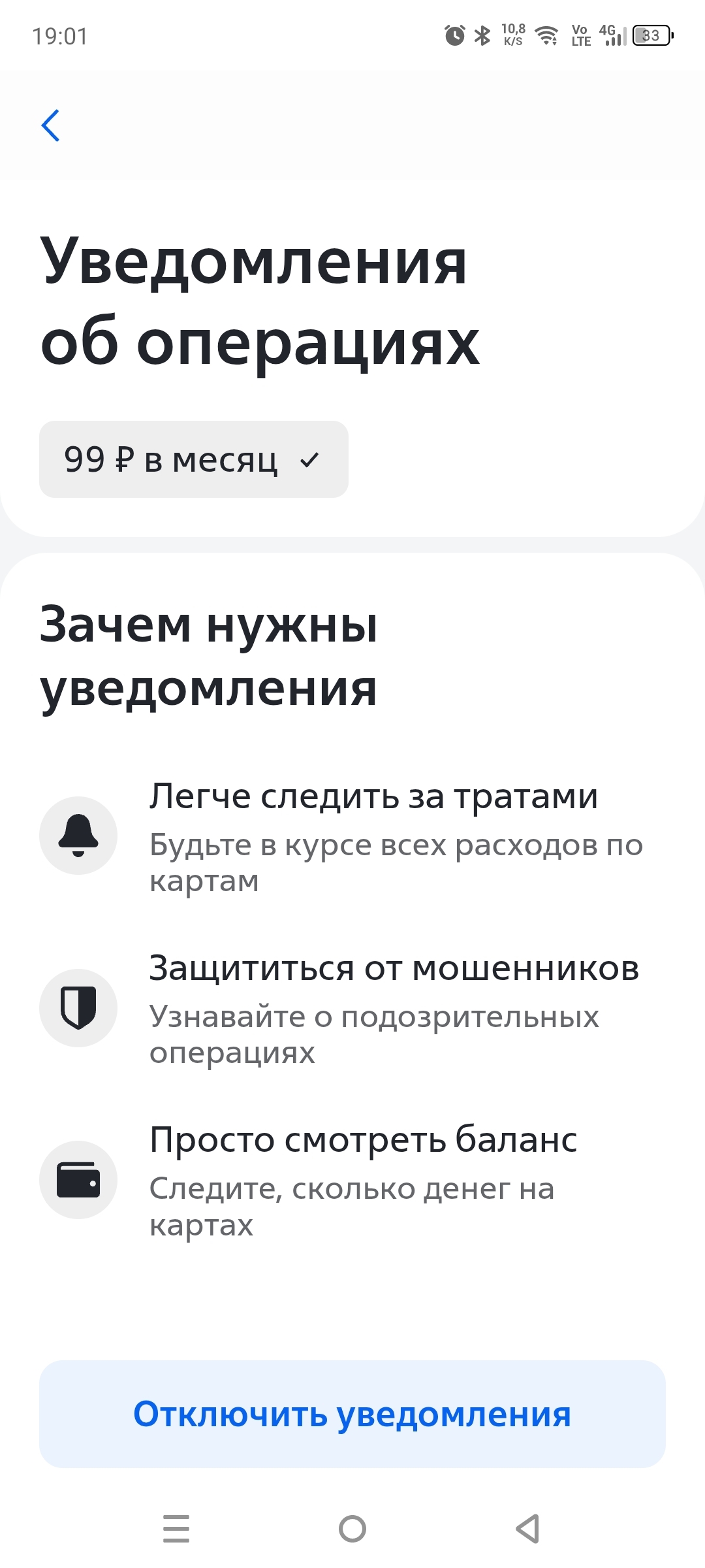 А буквально вчера поздно вечером приходит уведомление "Завтра с вас спишут 99 рублей за услугу "Уведомления".