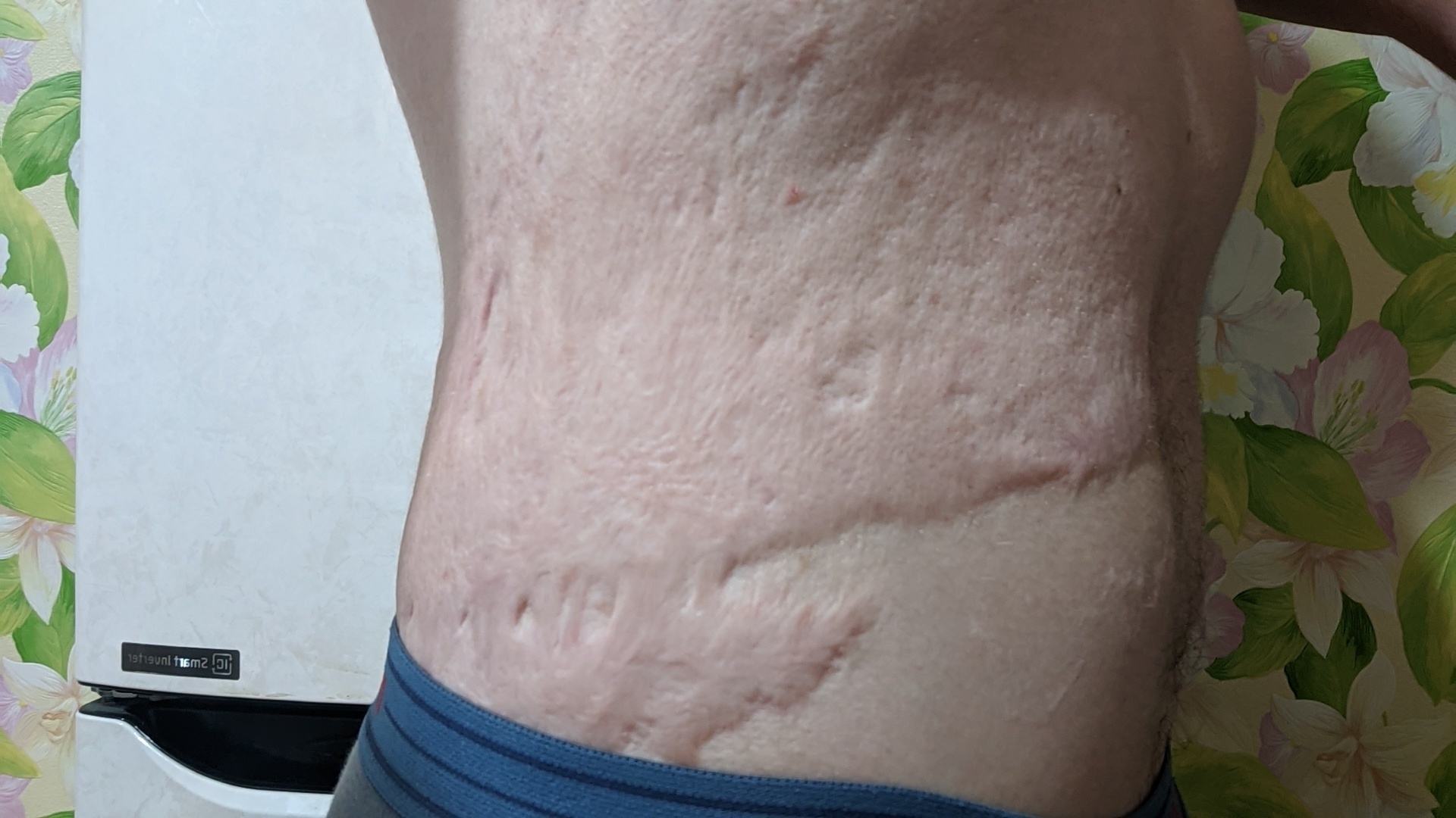 Потом я лежал ещё месяц. Заново учился ходить (прикольные были ощущения). Меня выписали и уже спустя полгода после выписки с больницы я перестал быть таким красным как помидор и наконец смог ходить в нормальной одежде, до этого ходил только в халате, либо в папиной футболке (она была мне по колено).