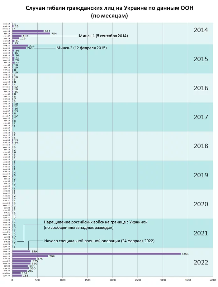 Число жертв падало? Это, кажется, у вас задача "забыть" то, что написано кровью. Да, да, и войска на границе Украина просто так стягивала, и нарушали границу РФ просто так, и заявление Зеленского про ядерный удар по России вообще по приколу был, и социально-экономическая блокада Донбасса тоже ничего особо не значила, и теракты постоянные тоже совсем демократические были.