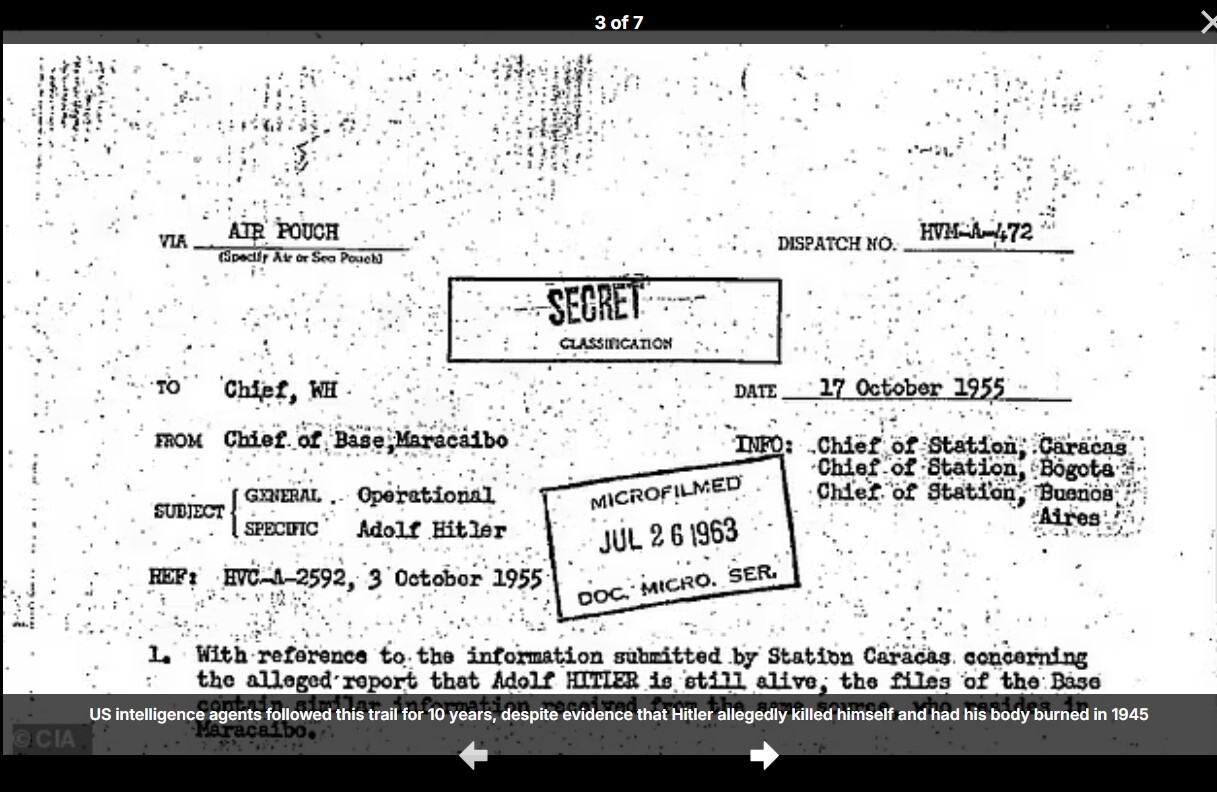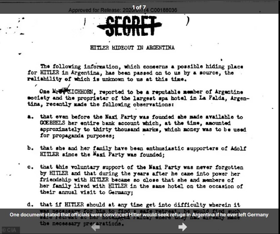 Declassified CIA docs reveal Hitler's 'secret escape' after WWII as new Nazi reports set for release | Daily Mail Online