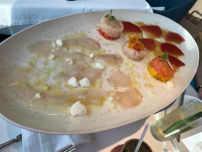 Но коли мы пришли в такое заведение, то и выбор надо делать соответствующий... Мы выбрали сет из ассорти карпаччо и тартаров: тунец, дорадо, аргентинская креветка, гребешок, лосось.