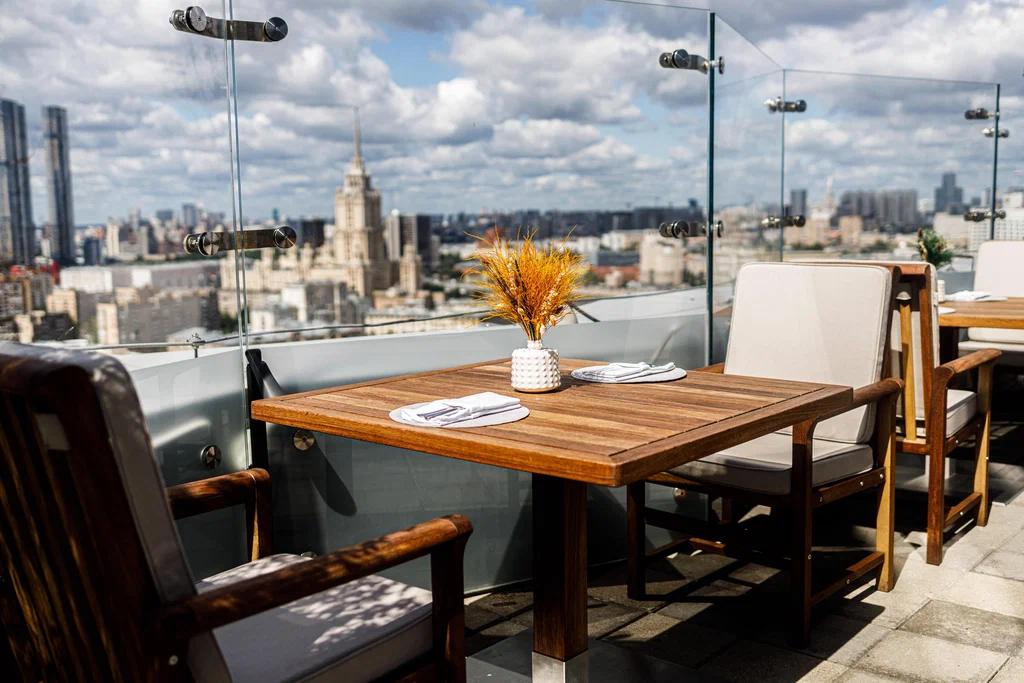 Пока мы ждали, мы решили осмотреться и выйти на веранду или как она там называется, перед выходом, стоит стол на нем в корзинке лежали в большом количестве сигареты "парламент найт блю" и стики айкос, но не простые, а которые Creation, можно было брать сколько хочешь, естественно это для тех, кто захочет выйти покурить, окинув взором Москву, а там есть на что посмотреть, как никак обзор на 360 по кругу.