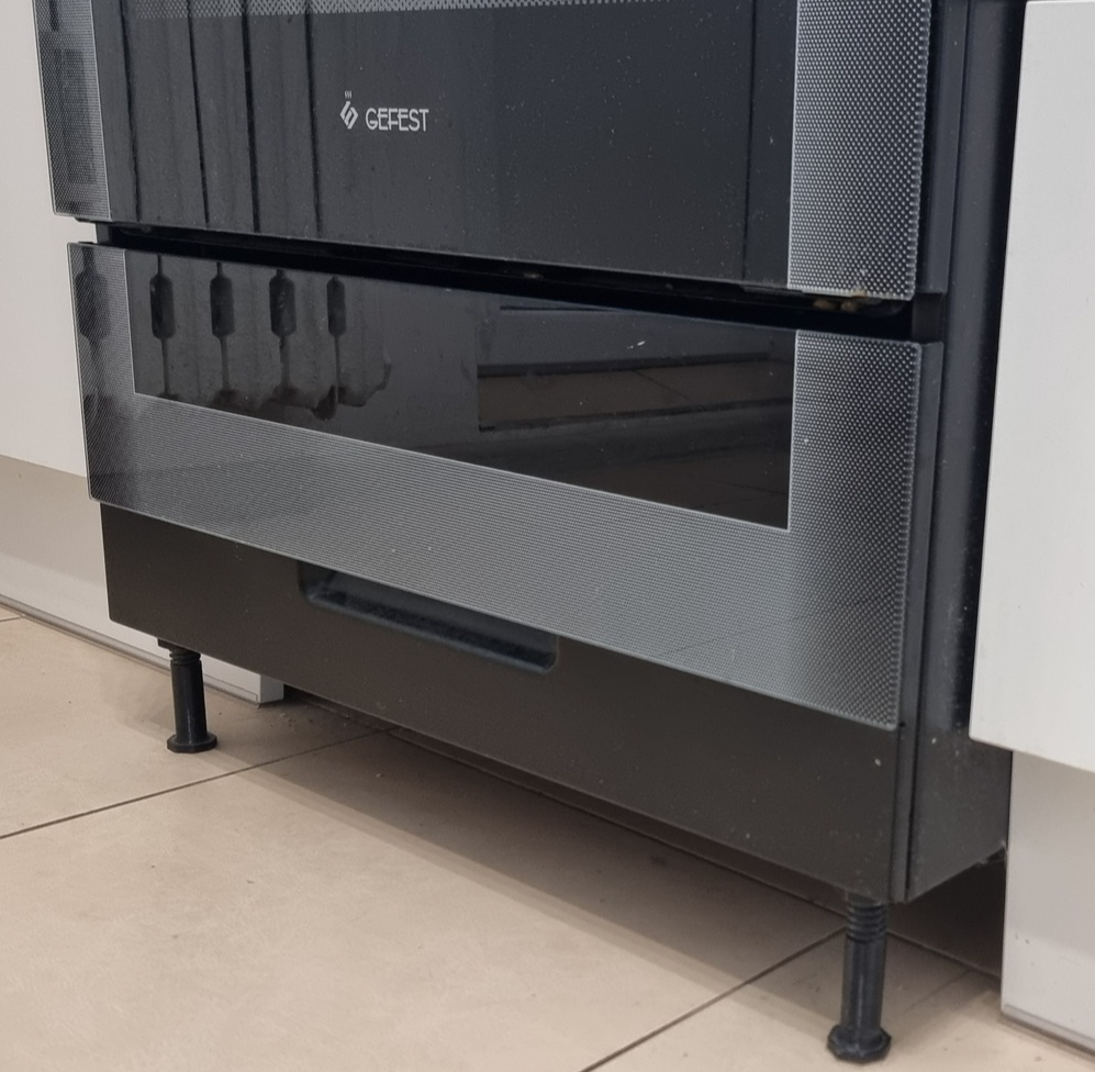Доработка тумбы. Нужно было поднять тумбу над полом. Деревянные ножки были куплены на маркетплейсе, а чтобы подружить их с тумбой придумал кронштейны, которые спрятаны внутри. Пятая нога по середине - регулируемая.