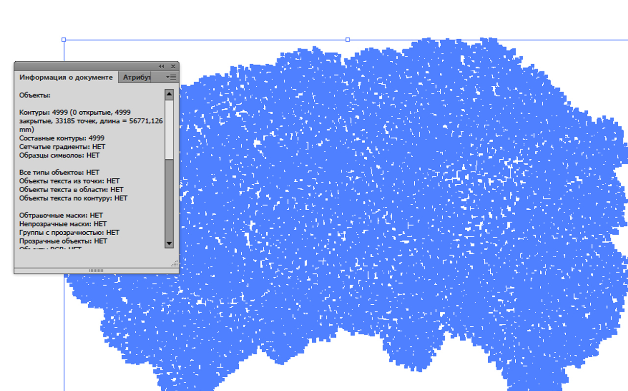 Открываем в иллюстраторе. В информации о документе видим 4999 закрытых контуров, это наши листики и есть