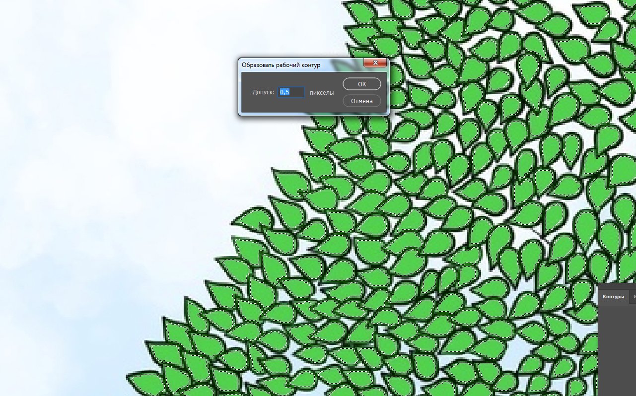 Из выделенных пикселов-листочков делаем контуры,