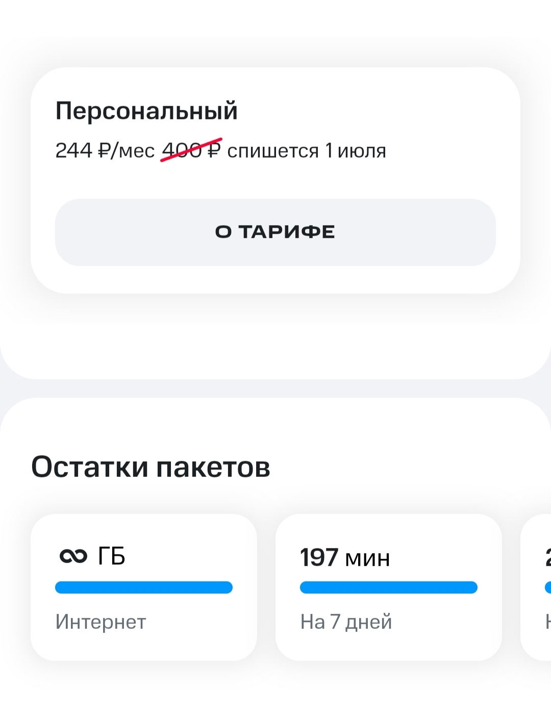А сейчас у меня 600 минут и 50 Гб. И приятная для меня цена. Как оказалось не много для счастья надо, ну их эти безлимиты. И пусть их название скукожилось до огрызка из двух букв, для меня этот провайдер навсегда останется в памяти как действительно честный, во всяком случае со мной, оператор.