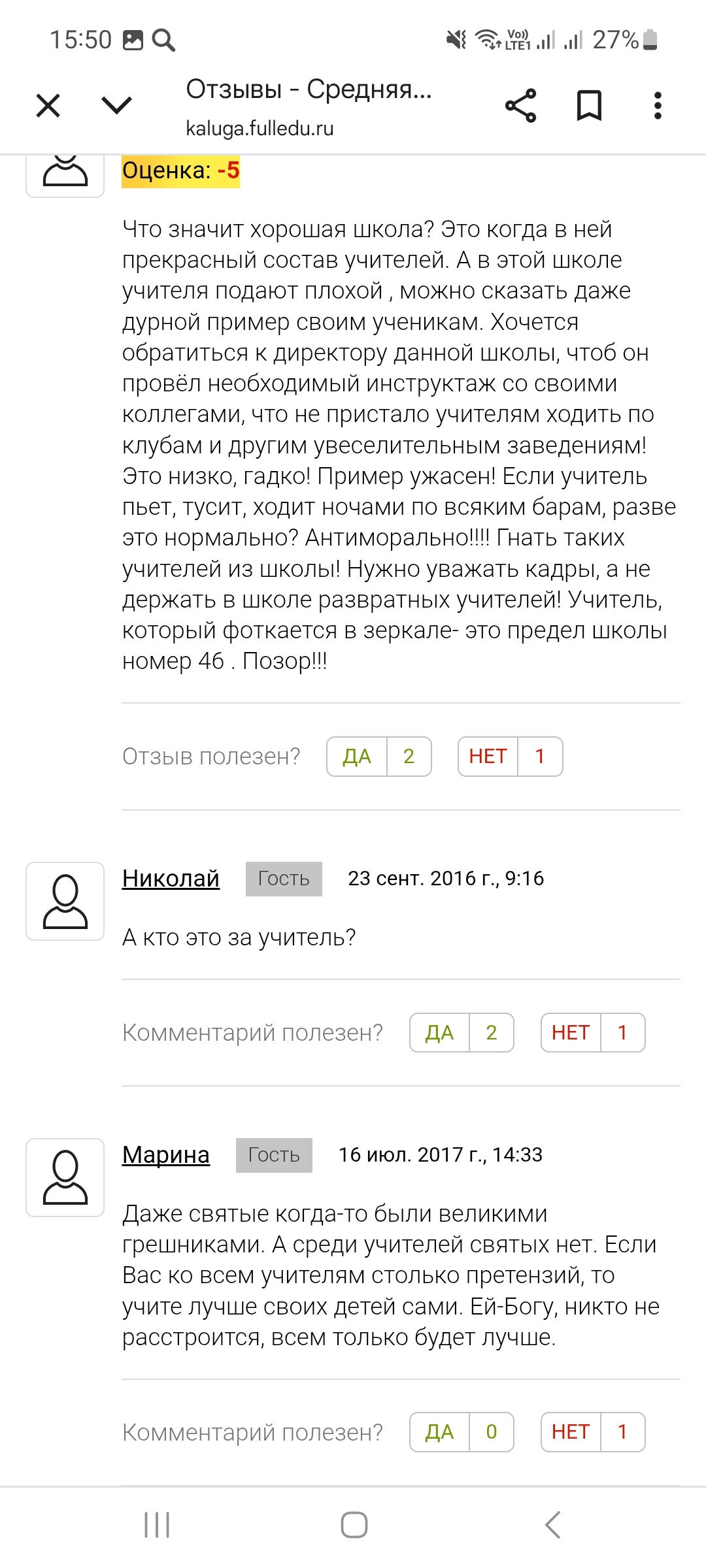 Что-то похожее видел как-то недавно в отзывах про 46 школу города Калуги, там какая -то неадекватная маман жаловалась, что учителя в этой школе ходят по каким -то клубам , барам, фоткаются в зеркале даже...с ума сойти