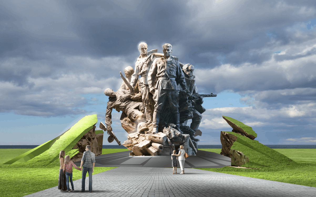На мой взгляд, монумент должен поражать не только размерами, а максимально емко передавать суть, в данном случае великой и очень дорого доставшейся тяжелейшей победы советского народа над идеологий фашизма, над беспощадной стальной машиной смерти - решающий перелом всей войны.