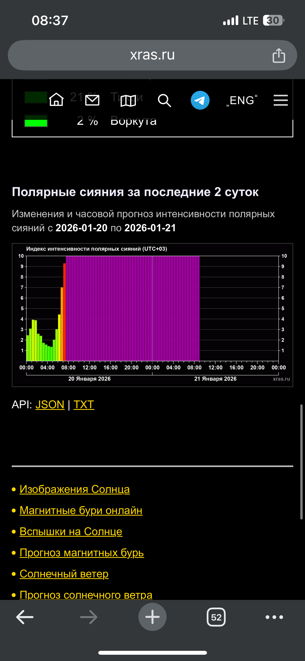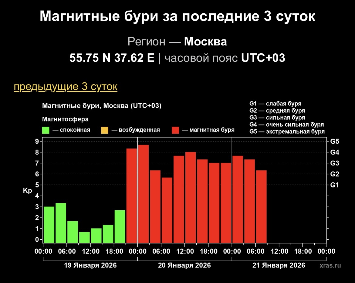 20-21 января происходит мощная магнитная буря (уровень 4 из 5)