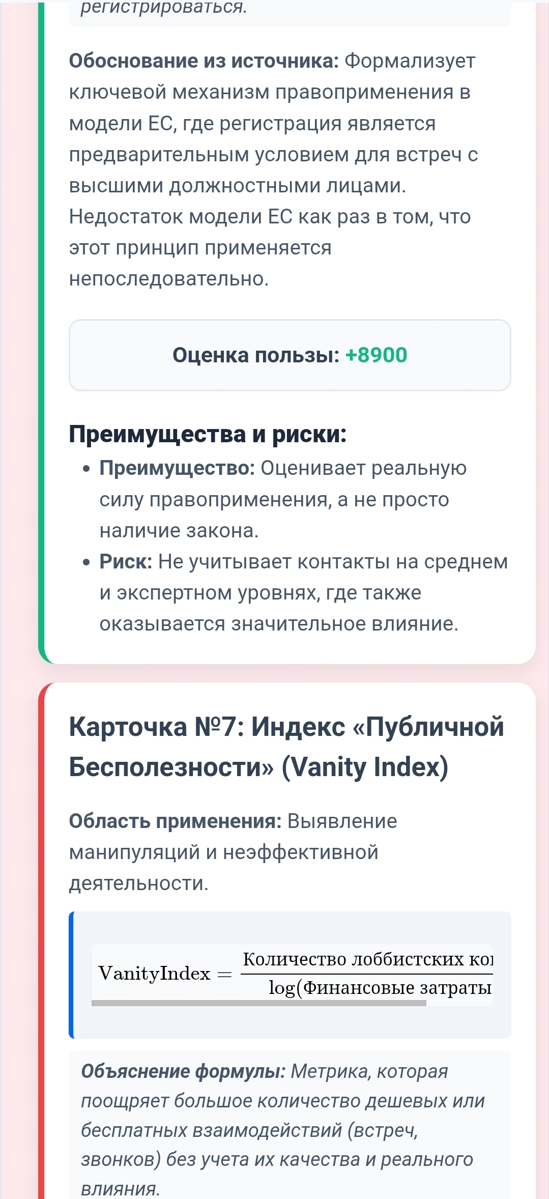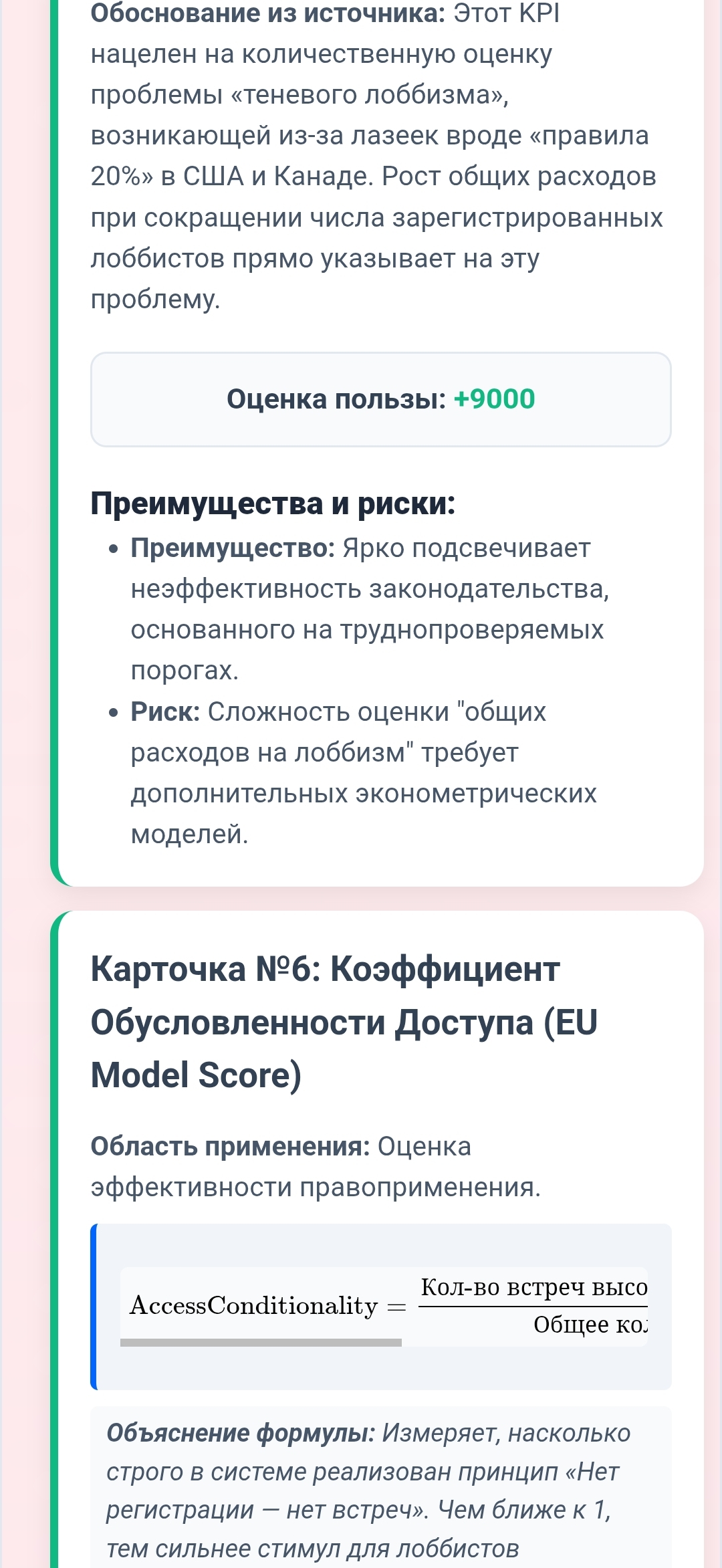 Относительно серии концептуальных проектов по оценке эффективности (включая «Систему оценки» и «Карточки KPI для оценки лоббизма»)
