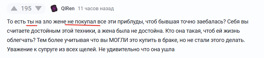 Вот только я не понимаю... У меня жена не работает. Дом большой. Так как все деньги у меня - я всю необходимую технику купил. Кто ее еще купит?