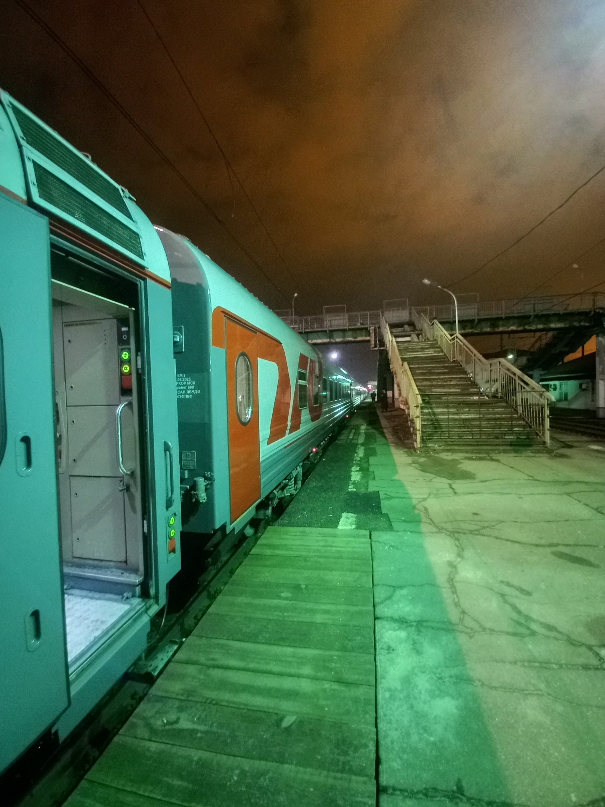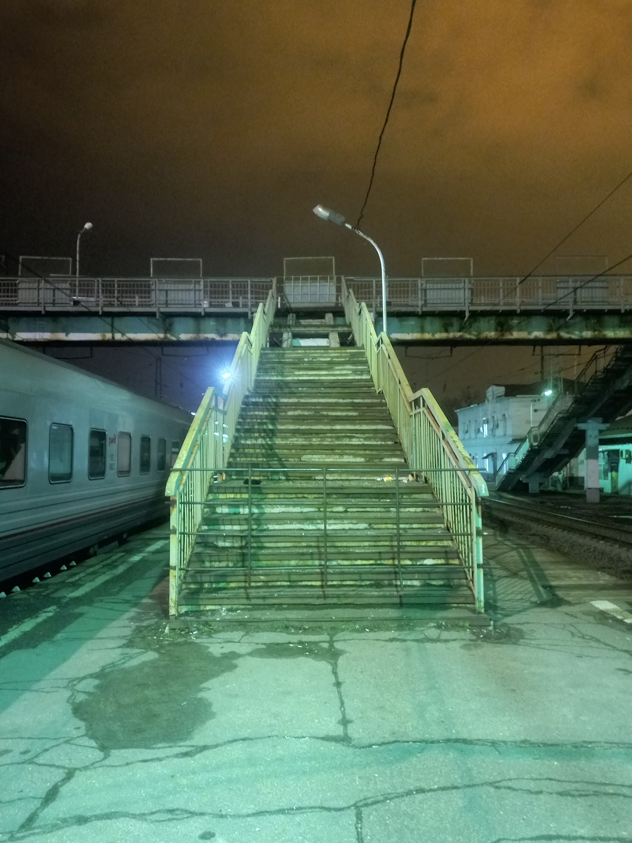 Только сегодня с поезда. Вагоны хорошие, хотя и старых хватает. Гораздо больше впечатляют некоторые станции. Например, вот, с красивым названием Ожерелье. Час ночи, на перроне ни одной живой души. Закрытый переход: