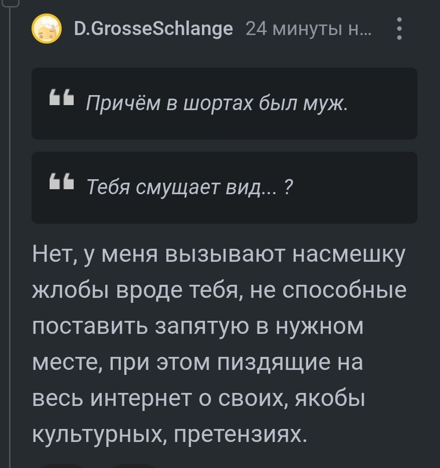 Живём в СПб, никогда не было проблем зайти в бар в нормальных цивильных шортах (ниже колена, почти бриджи). Тут решила показать мужу малую родину, поехали в Воронеж. Ну я-то помню Воронежские бары несколько другими. А теперь на блатной козе не подъехать. Мы, конечно, в шортах, на улице +35, как ещё гостю города не сдохнуть во время прогулки? В центре нас развернули в итоге в 4 барах из 5.