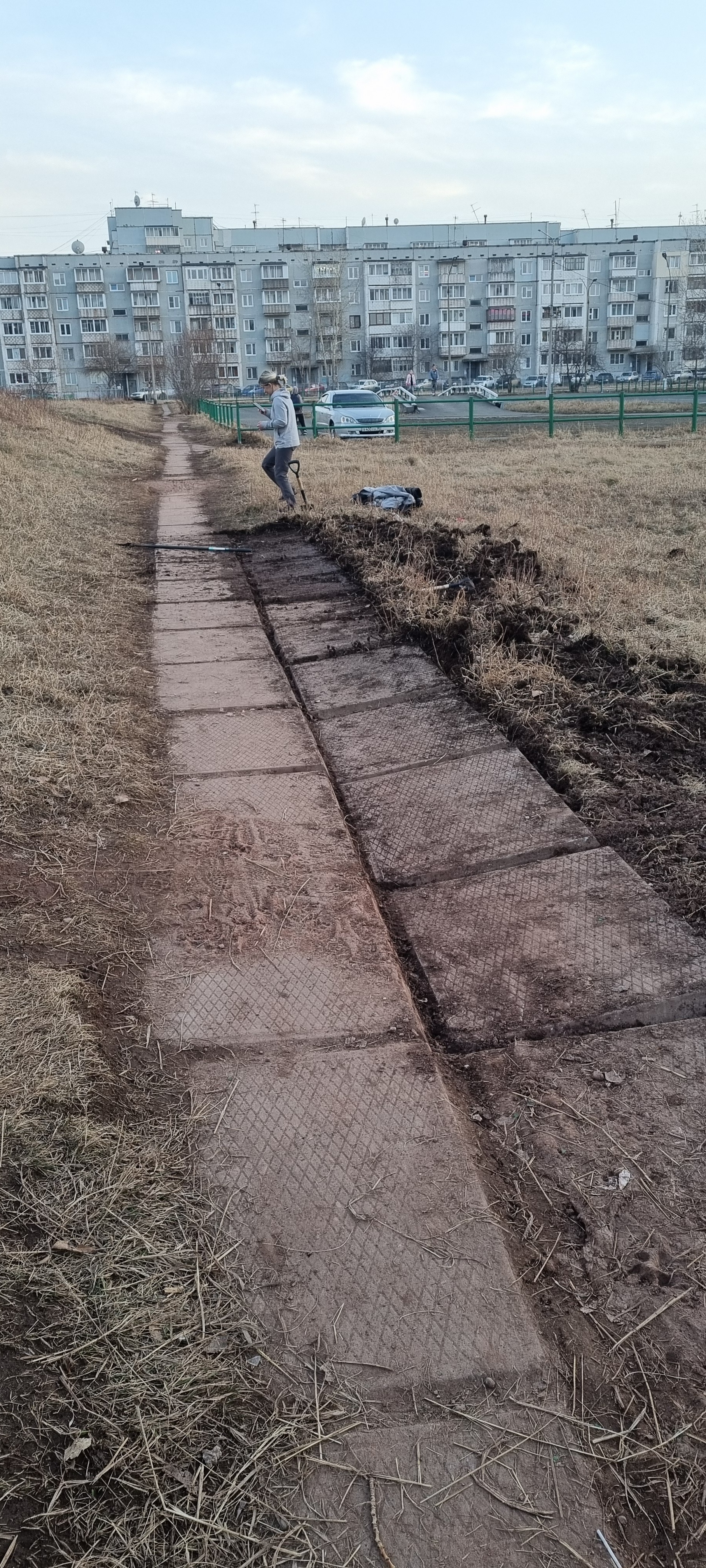 Последние три года, проходя по ней, я стала понимать, что не комфортно мне. Стали закрадываться мысли, что надо бы ее привести в порядок. А куда обращаться и не знаю. Ну и ходила, думала, подмечая, что пласты, заросшей травой и шиповником, земли можно сковырнуть с плит только весной, пока еще все не зазеленело.