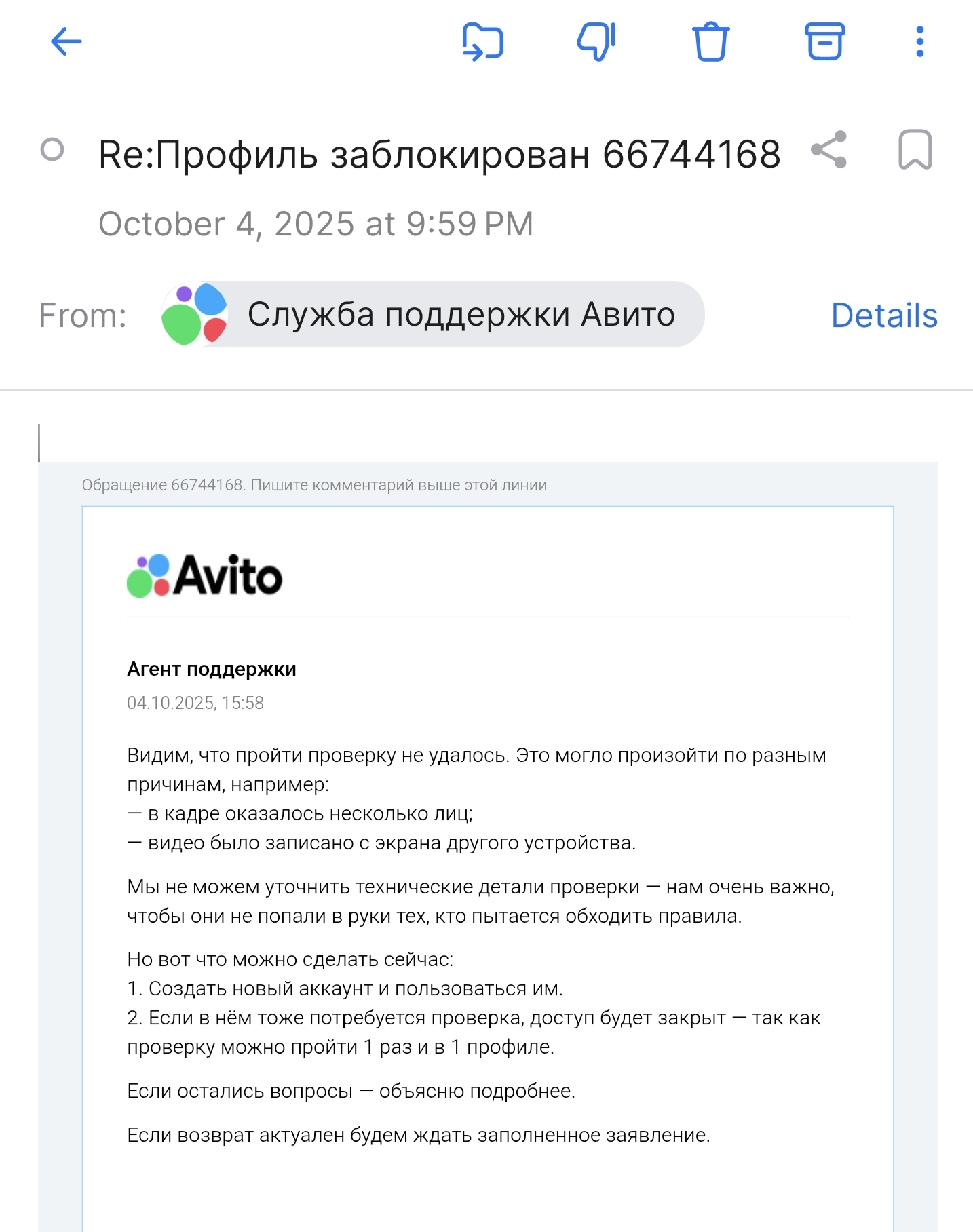 Но.... Почему я не могу подтвердить что я это я, и создать новый аккаунт и жить дальше? Или сменить пароль прислать Авито паспорт, фото, видео, подтвердить через госуслуги и вернуть аккаунт?