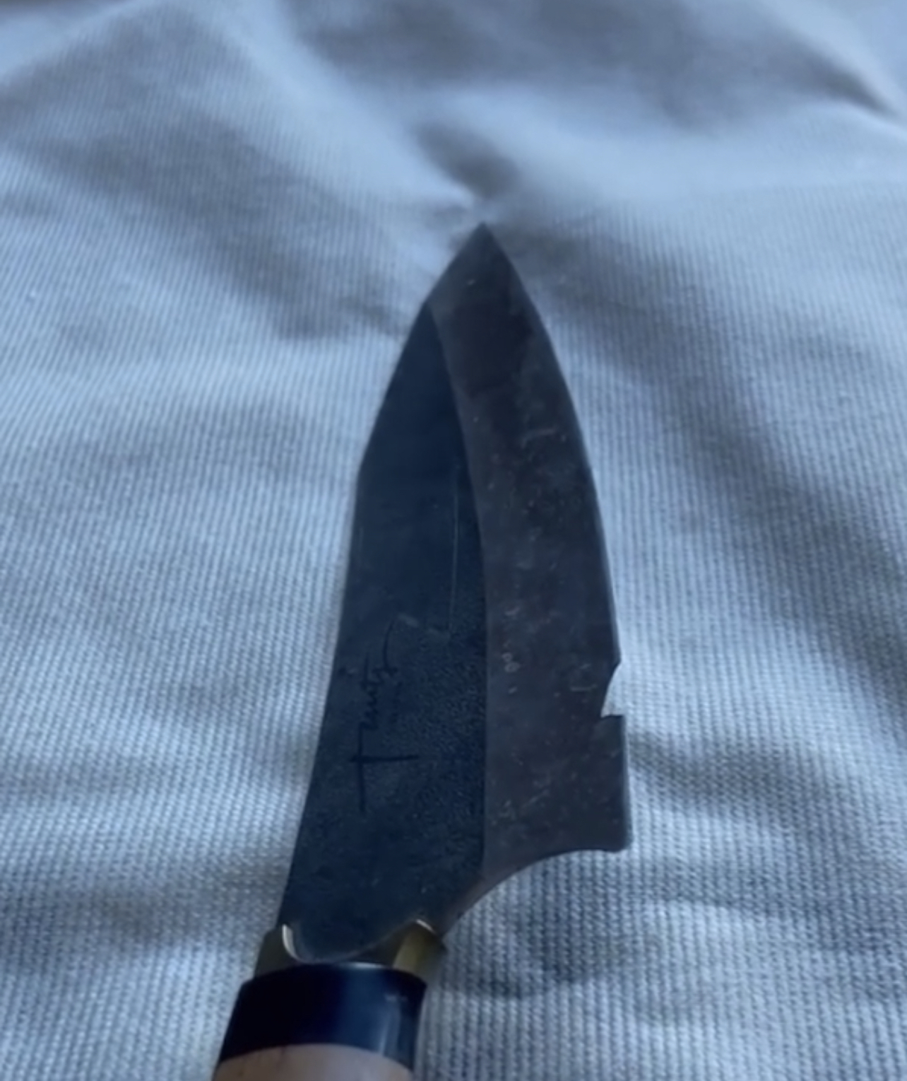 В общем нож за 20к прожил у меня 2а года, а я думал он на века будет, аккуратно его мыл после использования, но все тщетно. Жена меня подтрунивала каждый раз с ним, заплатил 20ку, а нож говно... Убеждал её что она ничего не понимает, сам себе мысль внушал, что нож хороший, но 2 недели назад я сдался и отнес его на помойку, работать с ним было не возможно, даже Икеевские "магазинные" которые появились задолго до него, до сих пор служат верой и правдой, и ничего у них не откололось за это время с их говносталью, да и отношение к ним было пренебрежительное, а это хрупкое дитя, сделанное на заказ со сталью в 5 раз прочнее, и ультра заточкой "сгорело" за два года.