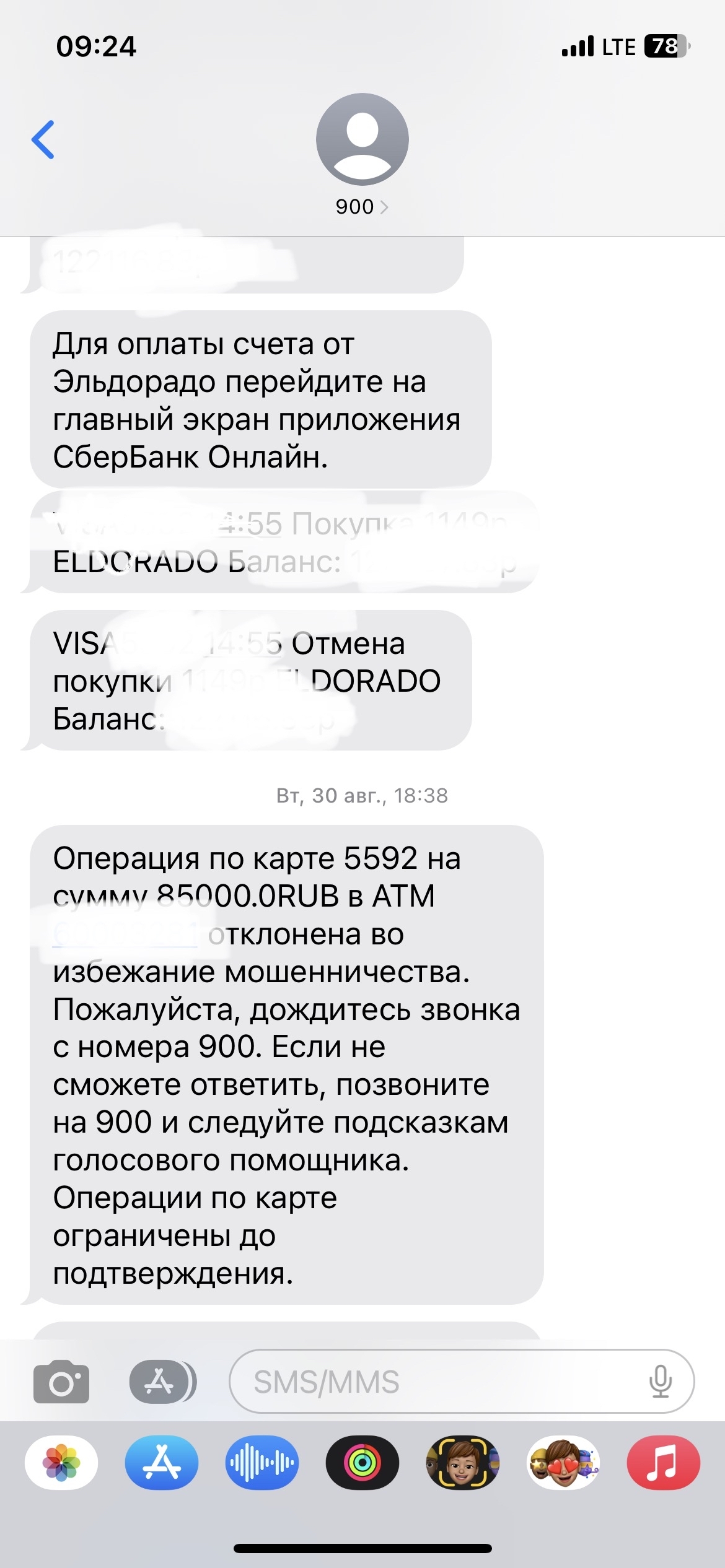 Кстати, да, был случай: надо было снять около 85к со счета в сбере, по пути в банк мне позвонили с «втб» и начали втюхивать о смене контактного номера, подхожу к банкомату, вставляю карту, получаю отказ! И приходит смс с 900: ждите звонка от банка, операция временно заблокирована. По итогу позвонил оператор, сказал что был мне звонок от мошенника и зачем я тут сразу снимаю деньги. По итогу поговорили 10 минут, все выяснили. Молодцы