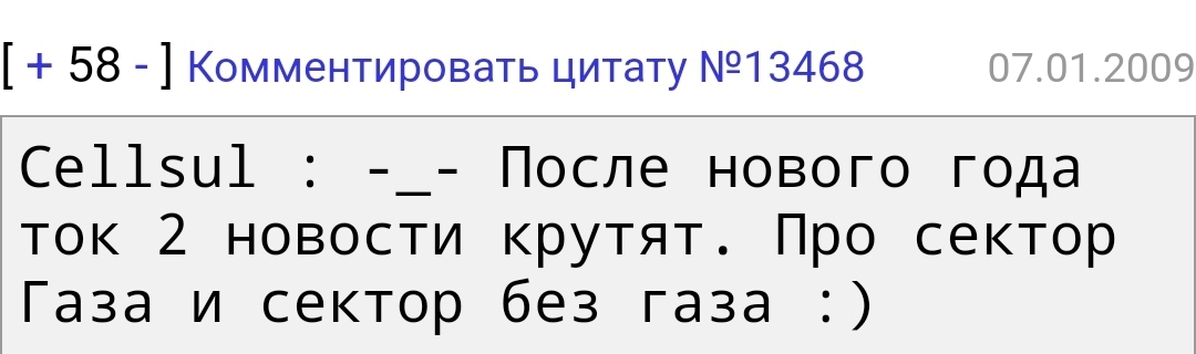 Если перефразировать старую шутку с башорга, то сейчас в основном крутят ток две новости. Про Сектор Газа и сектор без газа)