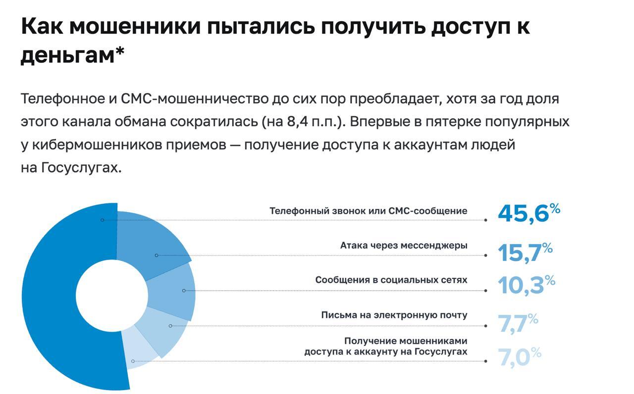 Пока ркн говорит, что "иностранные мессенджеры Telegram и WhatsApp стали основными голосовыми сервисами, используемыми для обмана и вымогательства денег", ЦБ РФ заявляет, что больше всего пострадавших от мошенников было от звонков по телефону в 2024 году.